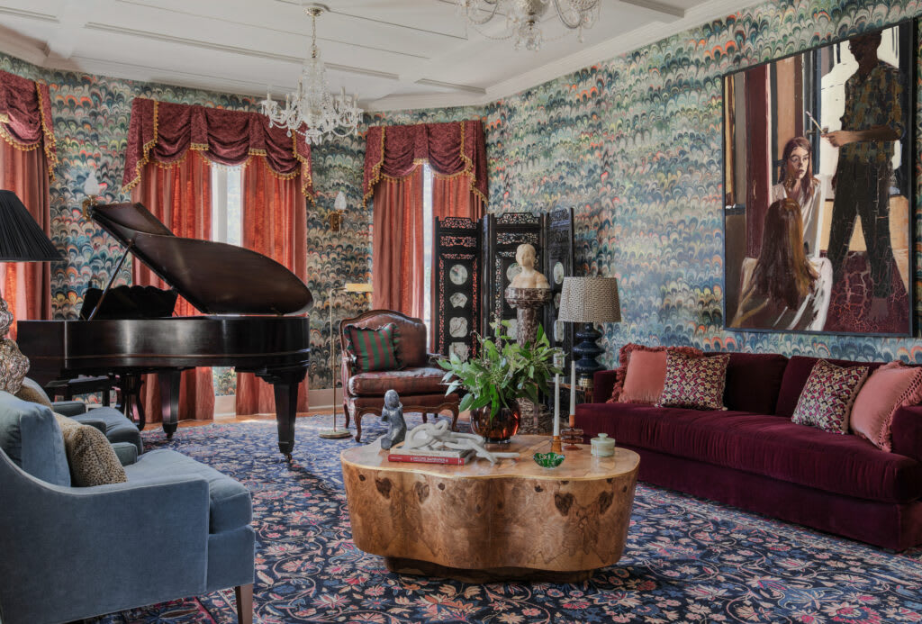 Nestled just minutes away from Fredericksburg's vibrant Main Street, known for its delightful wine festivals and authentic German cuisine, lies a hidden gem that redefines the boutique hotel experience - The Menagerie. This Queen Anne Victorian-style mansion, painted in a serene blush tone, is the centerpiece of Nicole and Ramzi al Rashid’s extraordinary creation. However, don't let its calm exterior fool you. Inside, a world of maximalist design awaits, brimming with bold textures, patterns, and a riot of colors that promise an unforgettable stay.