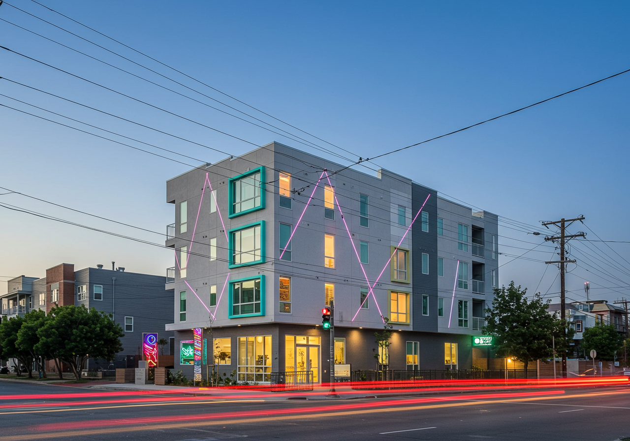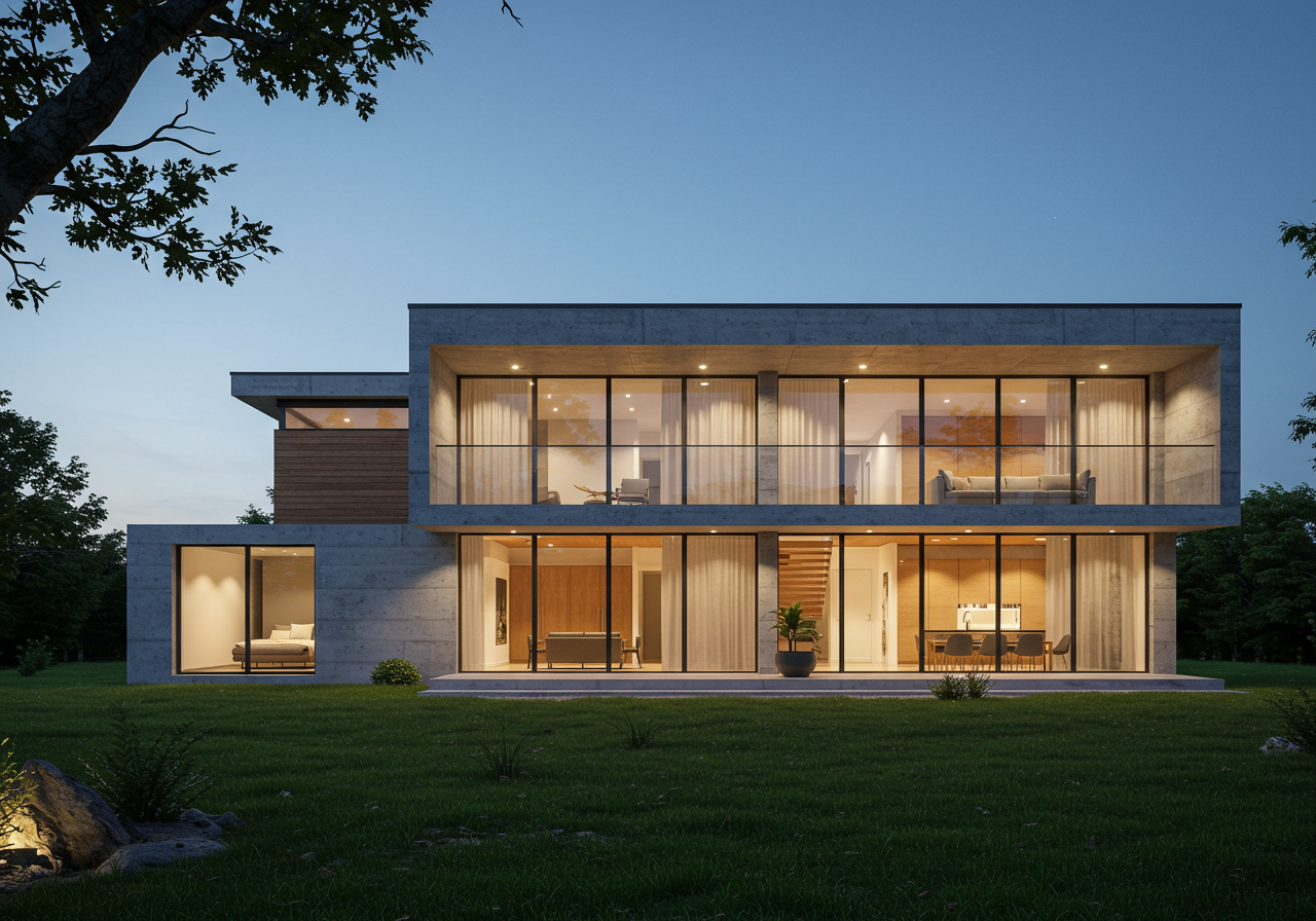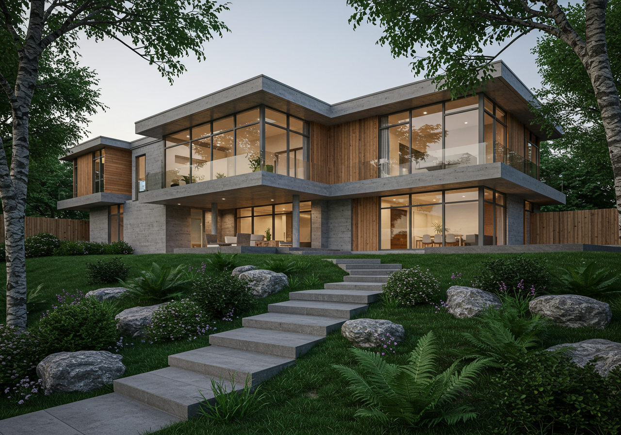 The Barton Hills Residence stands out with its stunning use of concrete board, concrete walls, and Core 10 steel, blending interior and exterior seamlessly. One of its unique features is a climbing wall with a seated area built into the concrete. This compact home minimizes its exterior envelope, significantly reducing energy use and setting a benchmark for efficient design.