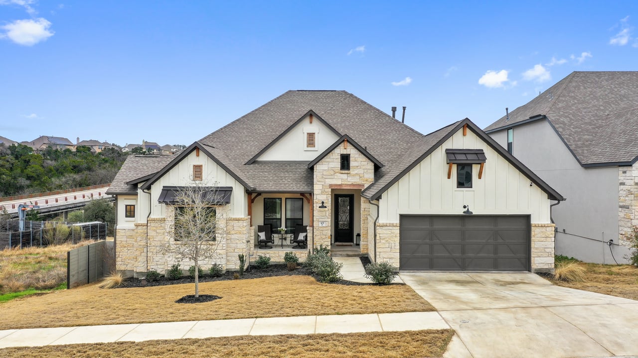 | Nestled on an oversized 0.284 acre lot backing up to lush green space and a peaceful creek in the highly desirable Wolf Ranch neighborhood, this home is exactly what you've been dreaming of, and more! Upon entering, you are greeted with high, tray ceilings, beautiful wood floors and a private home office. The open floor-plan is inviting and ideal for entertaining complete with a huge kitchen that flows seamlessly into the living area which feature sliding glass doors opening to views of the backyard and green space. The gorgeous chef's kitchen is complete with granite & quartz countertops, built-in stainless steel appliances, reverse osmosis water filtration system, a huge center island and tons of cabinetry storage. Off the main living area, the stunning owner's retreat features a luxurious ensuite with dual vanities, walk-in, doorless entry shower with dual shower heads, a soaking tub and a spacious walk-in closet that conveniently connects to the laundry room. Additional 3 bedrooms are located on the opposite side of the home with two full baths. Packed full of upgrades, this home is tech forward- enjoy a 240/50 amp electric car charger, boosted high speed wi-fi, home security system & front door bell. Home is complete with a large tandem 3 car-garage and a pool stub out which has been added for those looking to add a home pool. Enjoy the convenience of being a stones throw away from the amazing community clubhouse which is complete with an infinity pool, lounge, BBQ area, and playground. |